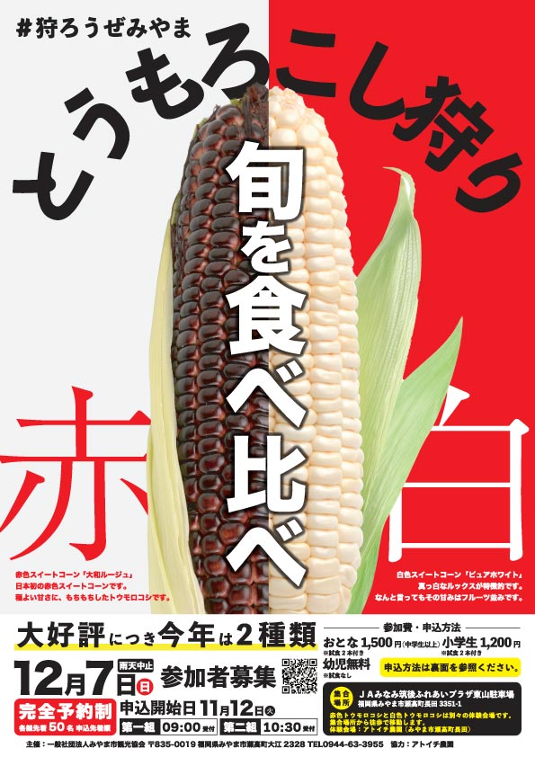 #狩ろうぜみやま『トウモロコシ狩り2025 秋』赤白、秋を食べ比べ。
